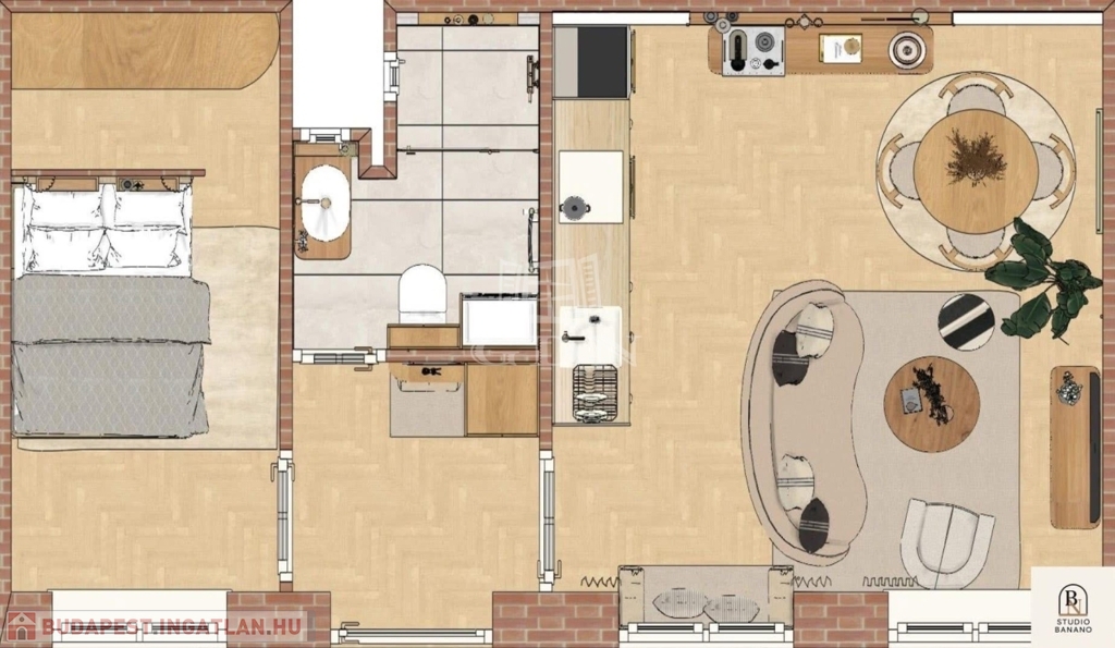 Nagy figyelmet kapott az enteriőr kialakítása. A kivitelező olyat alkotott, ahová mi is lelkesen költöznénk. Felkért egy lakberendezőt, hogy keltse életre a lakást - ezt a Studio Banano-nak köszönhetjük.