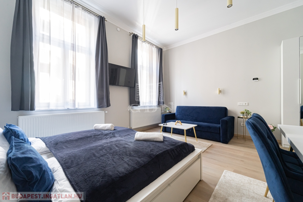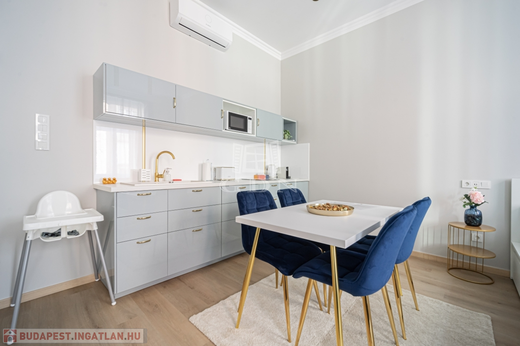 Az ingatlant két részre osztották, egy 30 nm-es és egy 41 nm-es teljeskőrüen felújított, rövidtávú kiadásra kialakított és felszerelt lakás lett belőle, melyet a teljes berendezéssel együtt, a képeken látható állapotban, ügyvédi használati megosztással értékesítünk.