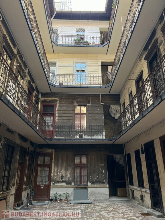 Eladásra kínálunk a VI. kerület egyik legfrekventáltabb részén, a Lovag utcában egy 90 m²-es, két szobás (+1 cselédszoba) földszinti, teljes mértékben felújítandó nagypolgári lakást.