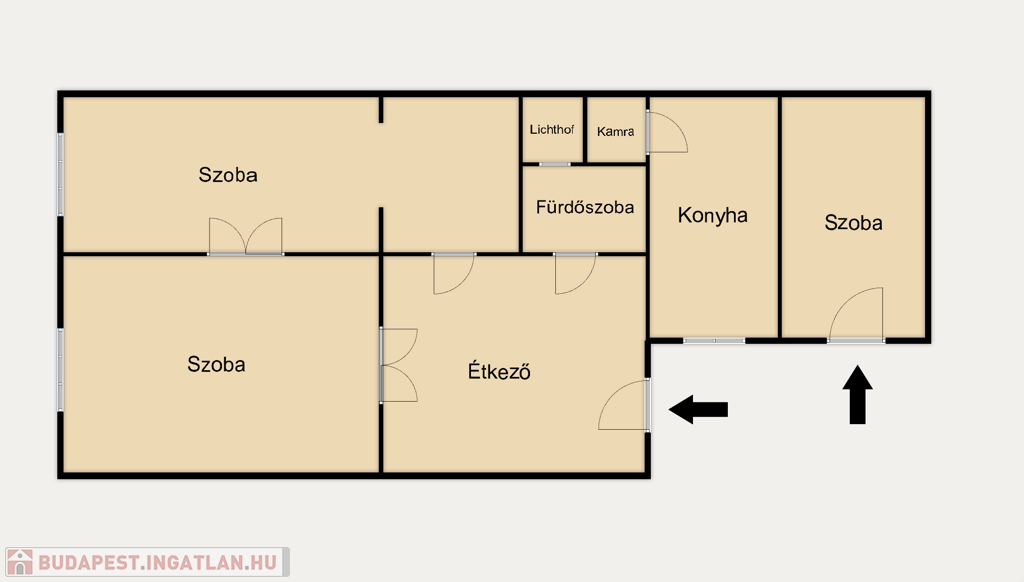 A konyhához kamra, a fürdőszobához lichthofra néző ablak tartozik, összkomfortos kialakítású.
