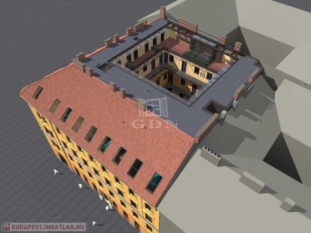 Délkeleti tájolású nappali, északkeleti háló, ablakok a csendes belső udvarra néznek