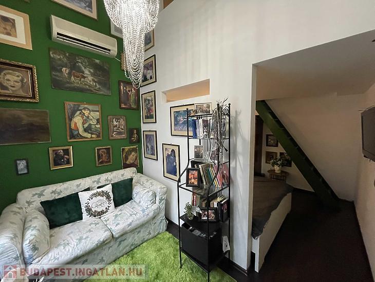 A 61 m²-es, két szobás plusz galériás lakás a történelmi hangulatú épületben található, amely nevét egykori tulajdonosáról, Ellinger Gusztávról - hegedűművészről és pedagógusról - kapta, aki az 1890-es években birtokolta a ház egyik részét. A palota ma is a környék egyik különleges, történeti hangulatú épülete, és a társasház két éve esett át felújításon, így rendezett, jó állapotú környezetben várja új tulajdonosát.