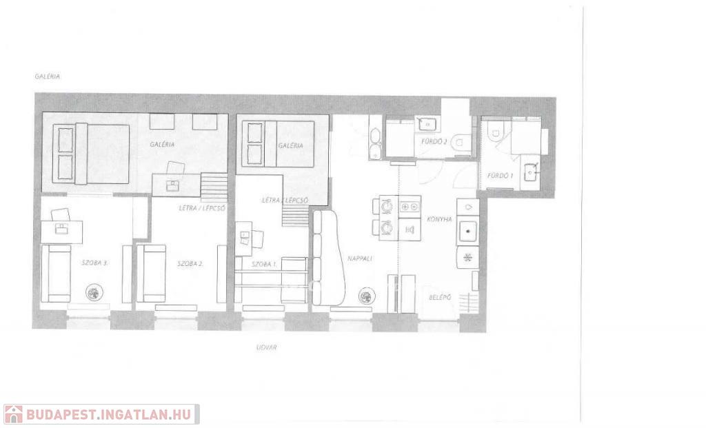 A tulajdoni lap szerint 71 nm-es alapterület a nagy belmagasság révén galériás megoldásokkal bővült.