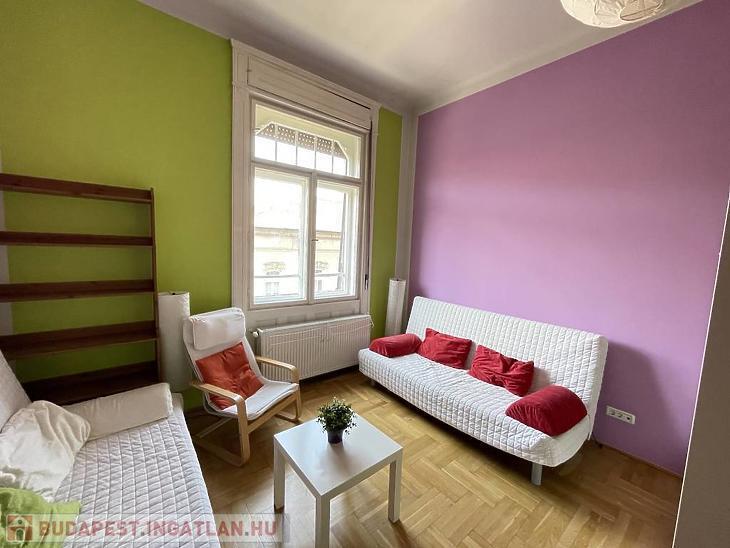 Eladó egy felújított, 37 m²-es lakás a 4. emeleten, egy liftes társasházban, a VII. kerület szívében.