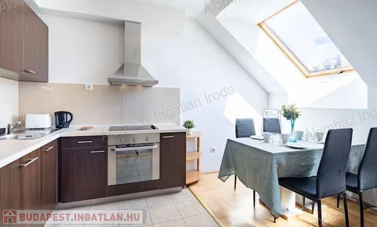 teljesen gépesített konyha (mosogatógép, sütő, főzőlap, elszívó, beépített hűtő és fagyasztó)