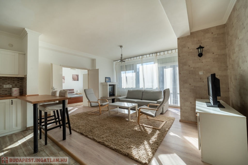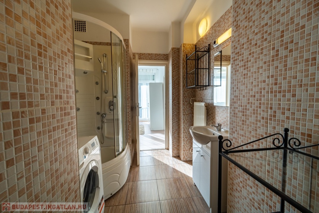 Komplett bútorozott és gépesített, a konyha mosogatógéppel és mikróval is felszerelt, de spájz és egyéb tárolóhelyek is kialakításra kerültek, a jelenlegi bérlők befektetési vásárlás esetén szívesen maradnának az ingatlanban.