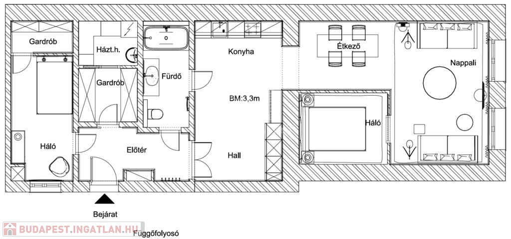 Két különálló lakrészre is átalakítható (kb. 30 nm + 57 nm) – ideális befektetőknek, vagy két generációnak!