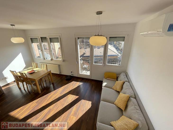 A modern elrendezésű, felújított állapotú ingatlan amerikai konyhás nappalival és két külön nyíló hálószobával rendelkezik, így kényelmes és jól elkülönülő életteret biztosít akár pároknak, akár kisebb családnak, de befektetésnek is kiváló választás.