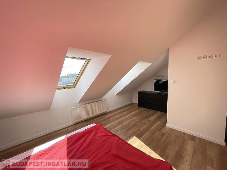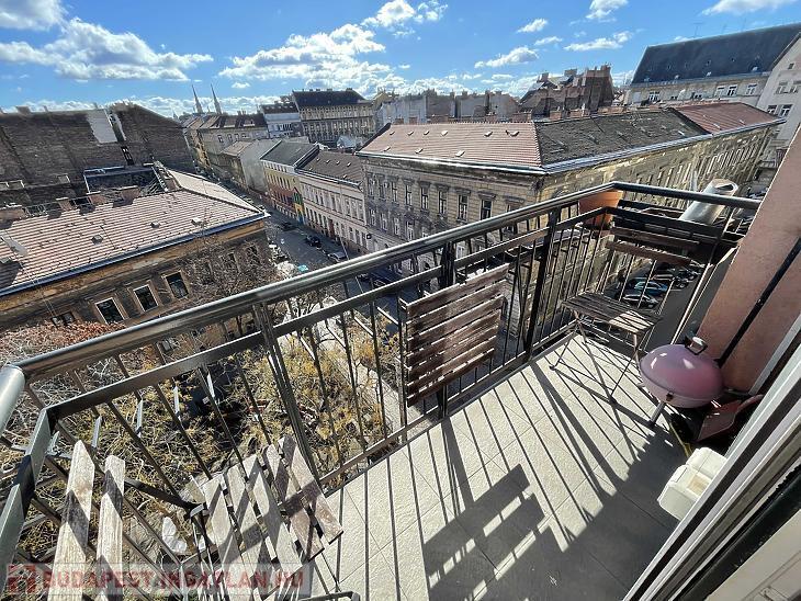 Eladó a VII. kerületben, a Jósika utcában, a Szenes Hanna park mellet egy igazán különleges hangulatú, panorámás kilátással rendelkező, nettó 60, bruttó pedig 80 nm-es, belső kétszintes (duplex) lakás egy 2007-ben épült, liftes társasház 5. emeletén.