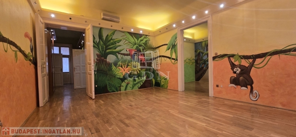 A két tágas szoba utcai nézetű, ennek köszönhetően a lakás rendkívül világos. A 380 cm-es belmagasság tovább növeli a térérzetet, így a lakás akár galériázásra is kiváló lehetőséget kínál.