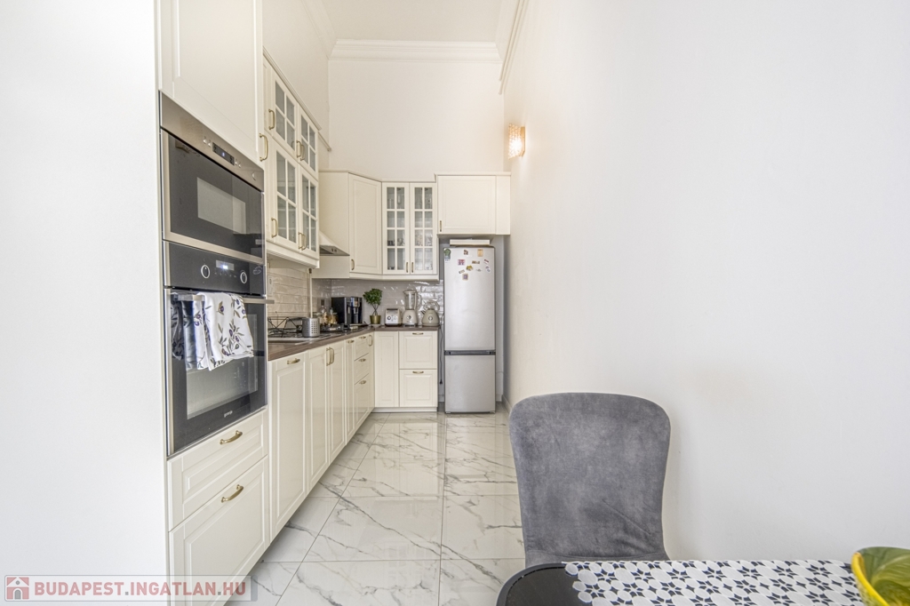 A belmagasság 4.2 méter, a fűtést és a melegvizet kondenzációs kazán biztosítja. A konyha és a komplett felújítás 5 évvel ezelőtt készült el, így új tulajdonosának csak saját stílusára kell szabnia, komolyabb ráfordítást nem igényel.