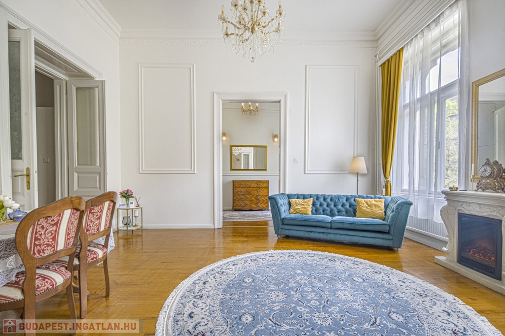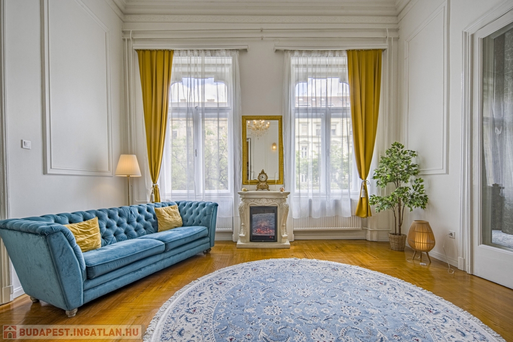 Belső Erzsébetvárosban, az Erzsébet körúton eladó egy rendkívül igényesen és hangulatosan felújított, 103 m2-es, 3 szobás, első emeleti, igazi nagypolgári lakás.