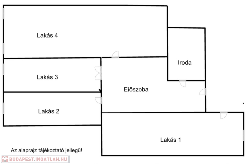 A négyből egy lakás külön bejárattal rendelkezik, a másik három egy közös folyosóról nyílik.