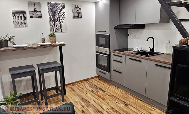Az ingatlan ára tartalmazza a konyhabútort, a beépített sütőt a két lapos főző lapot és az elszívót.