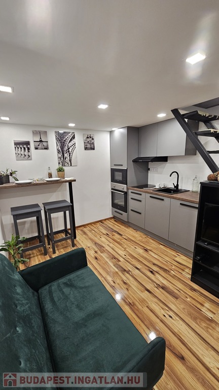 Amerika konyhás nappali, zuhanyzós fürdőszoba kerül kialakításra, a galéria pedig hálórésznek lesz kialakítva. A szoba ablak udvarra néző. A lakás külön bejárattal rendelkezik.
