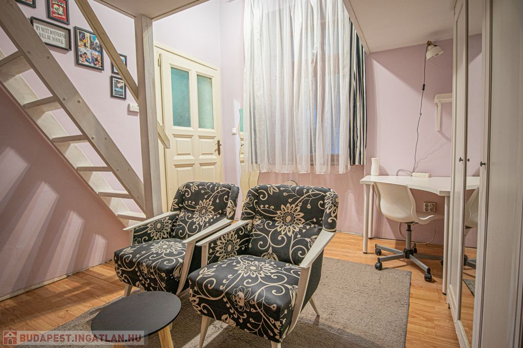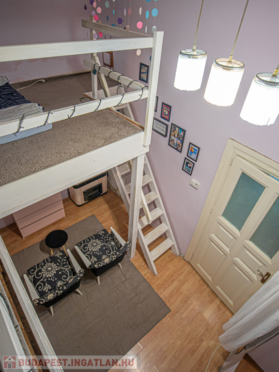 Eladó a VII. kerületben az Alpár utcában közel a Városligethez egy jó állapotú polgári házban lévő 25nm-es, 1 szoba+galériás, jó állapotú, gázkonvektoros, csendes lakás.