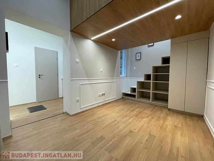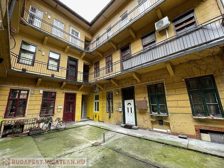 Felújított, galériás földszinti lakás eladó a VII. kerületben, a csendes és rendezett Alpár utca egyik nyugodt társasházában.