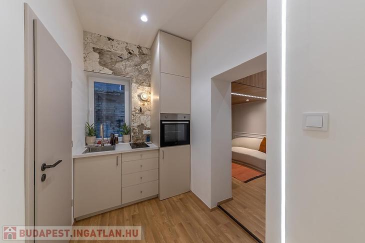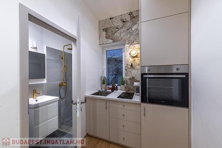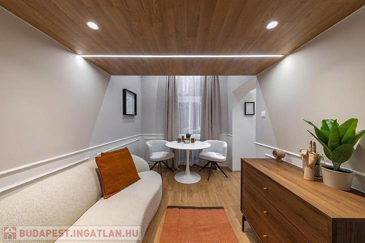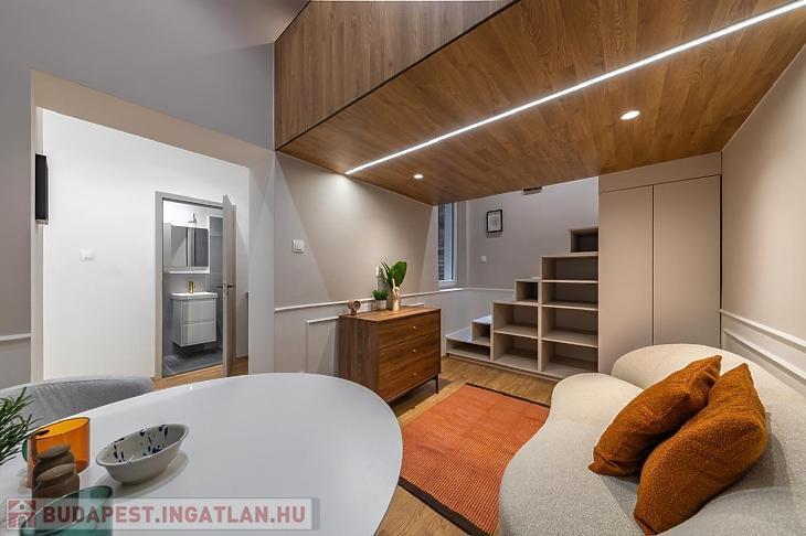 Felújított, galériás földszinti, bútorozott lakás eladó a VII. kerületben, a csendes és rendezett Alpár utca egyik nyugodt társasházában.