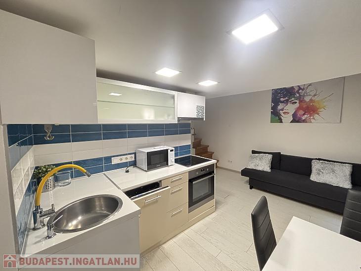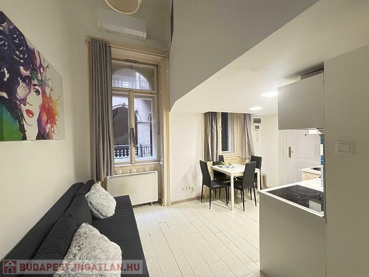 A belváros egyik legnépszerűbb részén kínálunk megvételre egy 20 nm-es, hangulatos és praktikus elrendezésű kislakást. Az ingatlan különlegessége a 15 nm-es, álló magasságú, zárható galéria, amely kényelmes, elkülönített hálórészként szolgál. Ennek köszönhetően az alsó szinten egy tágas, amerikai konyhás nappali került kialakításra, amely jól berendezhető és maximálisan kihasználható életteret biztosít.