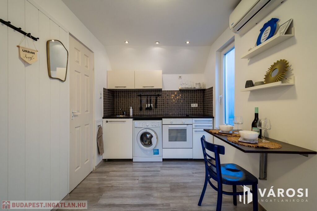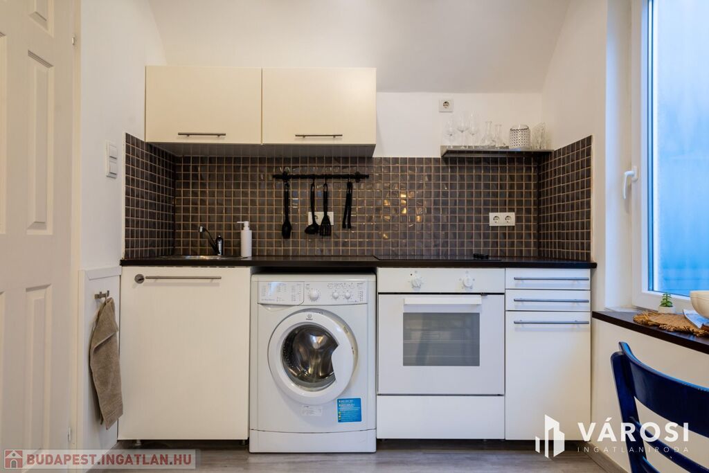 A lakás vételára tartalmazza az összes bútort, konyhagépeket, eszközöket, mindent, ami a fotókon látható.