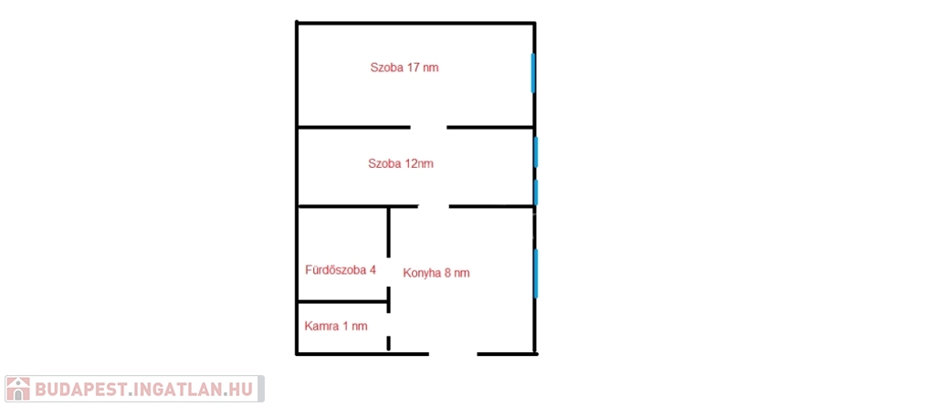 Az ingatlan keleti tájolású, ablakai udvarra néznek.