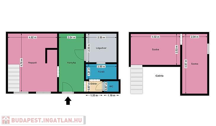 Eladó belső kétszintes, galériás lakás a Baross térnél
