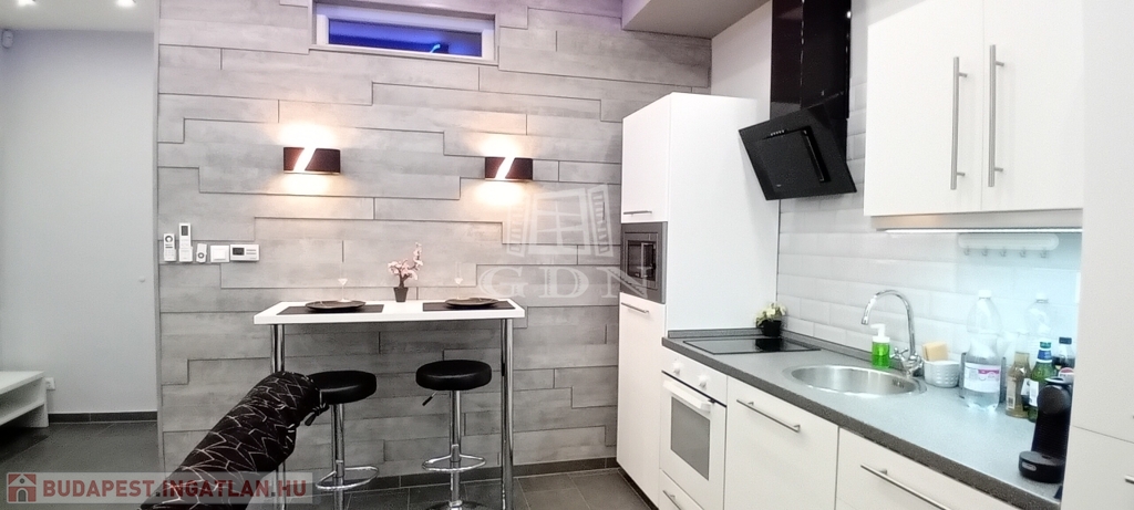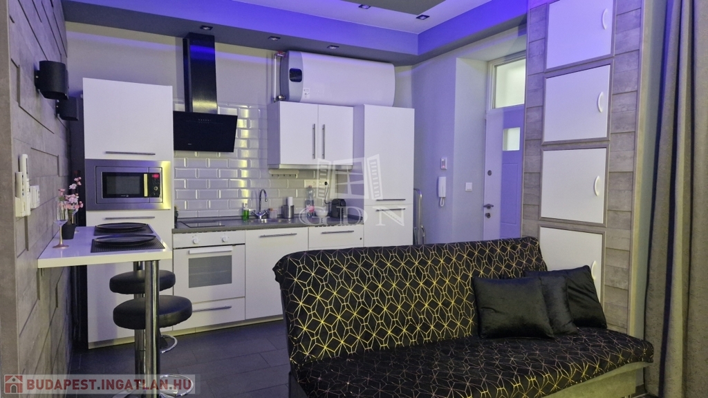 Az Erzsébet körúti appartman amerikai konyhás nappali+háló és modern zuhanyzós fürdőszoba elrendezésű, bútorozott-gépesített, azonnal költözhető.