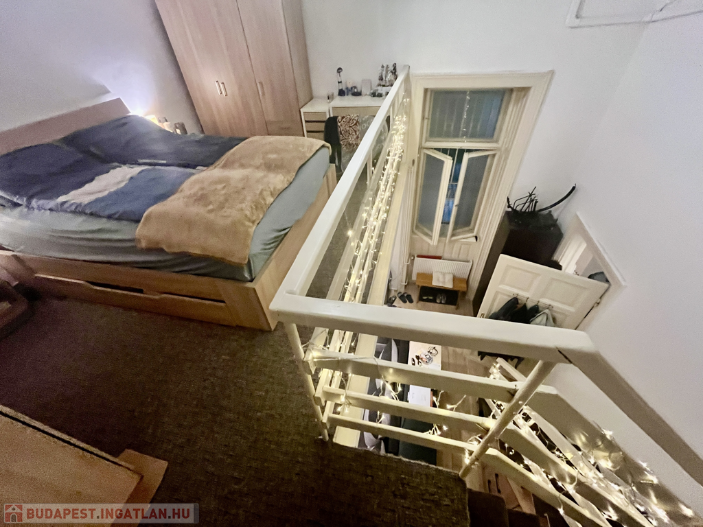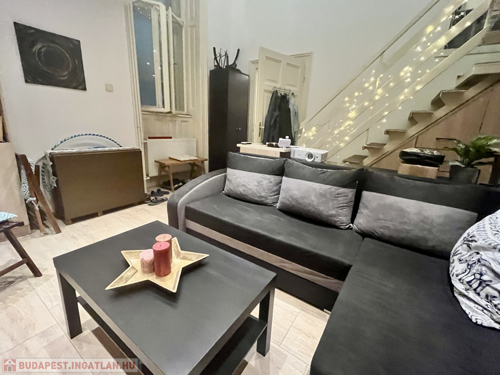 Budapest VII. kerületében, a Városliget közvetlen közelében eladó egy belső udvarra néző, földszinti, kétszintes, kiváló állapotú tégla lakás, 4,65 m belmagassággal.