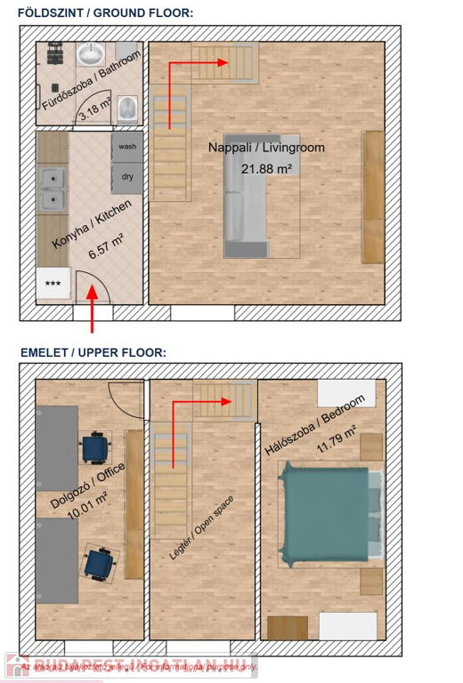 Hasznos alapterület: kb. 52 m² (földszint + teljes értékű galéria)