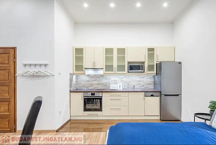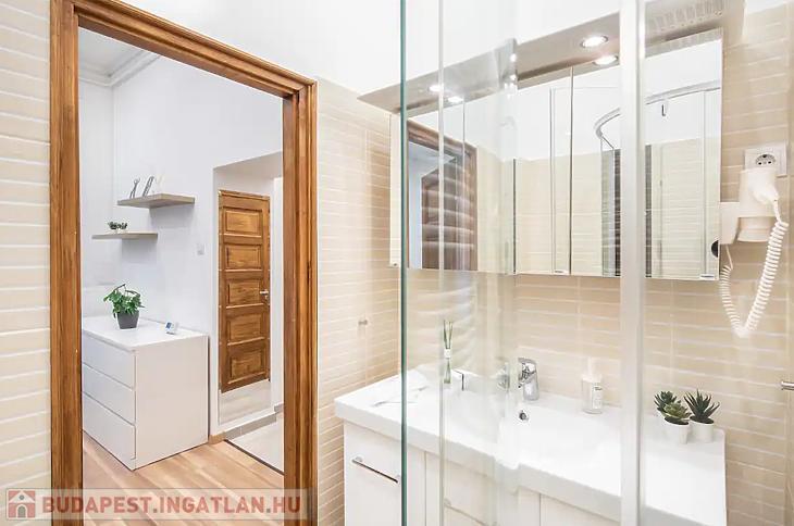 Az ingatlan amerikai konyhás nappaliból és külön nyíló hálószobából áll, ami ritka és rendkívül praktikus ebben a méretkategóriában. A lakás komfortját tovább növeli, hogy a fürdőszoba és a WC külön helyiségben található, valamint egy külön tároló is a lakáshoz tartozik. A lakás körülbelül 10 évvel ezelőtt teljes körű műszaki és esztétikai felújításon esett át, melynek során a gépészet, burkolatok és a belső terek is megújultak.