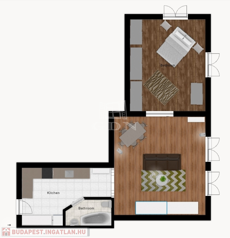 A lakás két szobából áll, melyek utcai kilátással rendelkeznek.