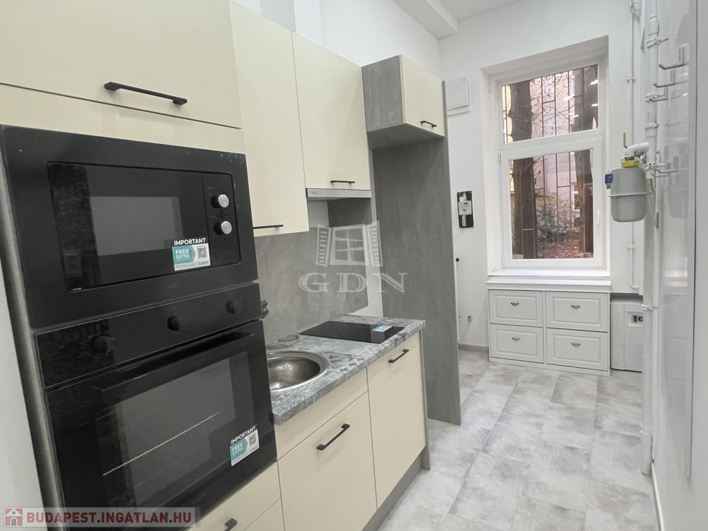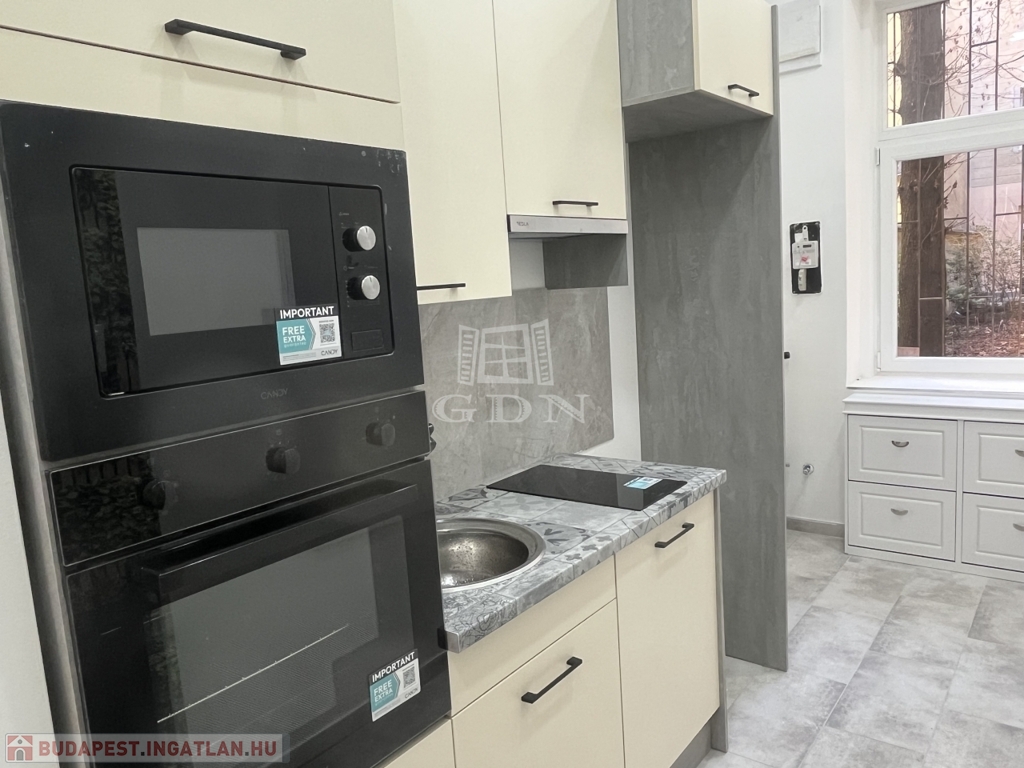 Gépesített konyha: mosogatógép, sütő, mikró, főzőlap, kivezetett elszívó, hűtő