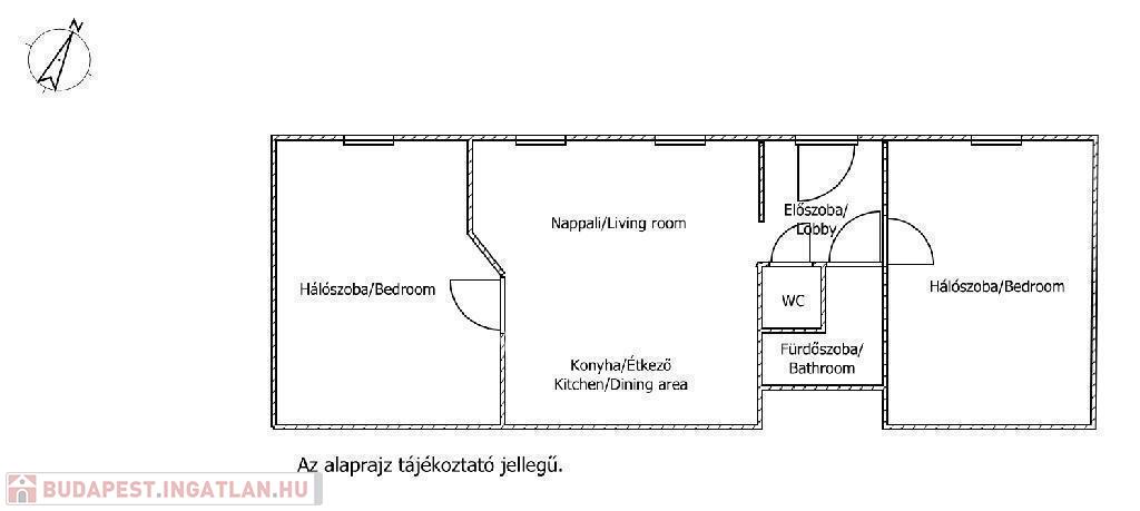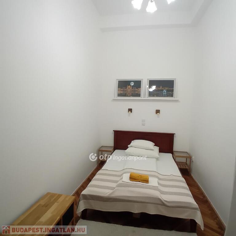 A tulajdoni lap szerint 1,5 szobás a lakás, valóságban amerikai konyhás nappali és két különbejáratú hálószobából áll. A fürdőszoba tusolós, a WC különálló. Beépített faliszéf is van.