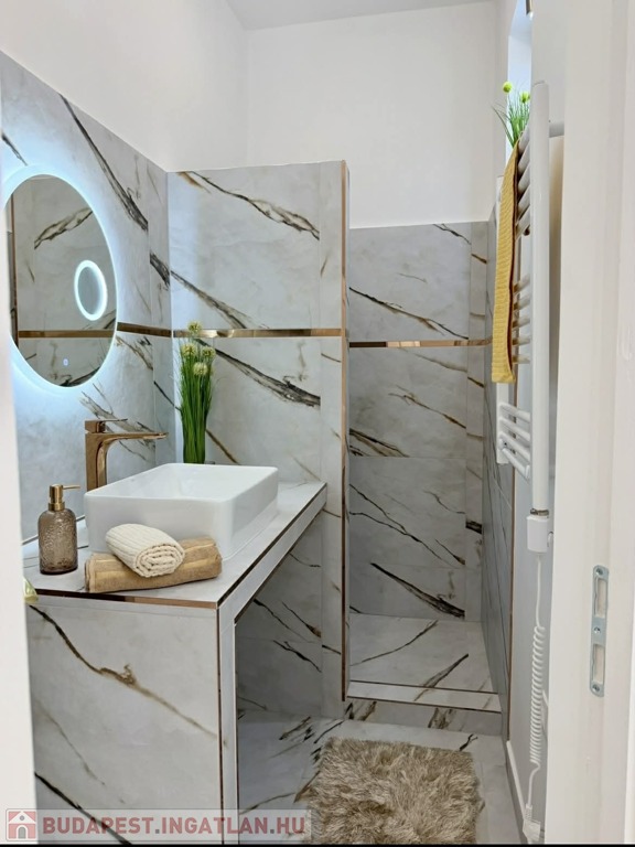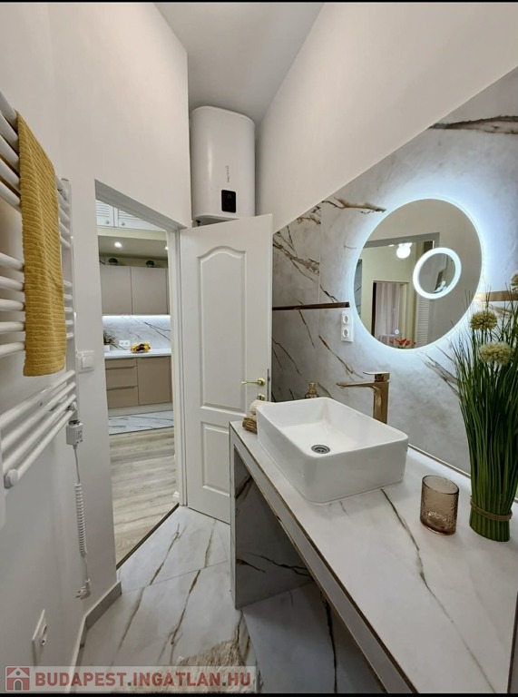 A felújítás mindenre kiterjedt: új burkolatok, új víz- és villanyvezetékek, aljzat födémig visszabontva és új betonréteggel kialakítva. Modern, fiatalos esztétika, minőségi konyhagépek – ide valóban csak költözni kell.