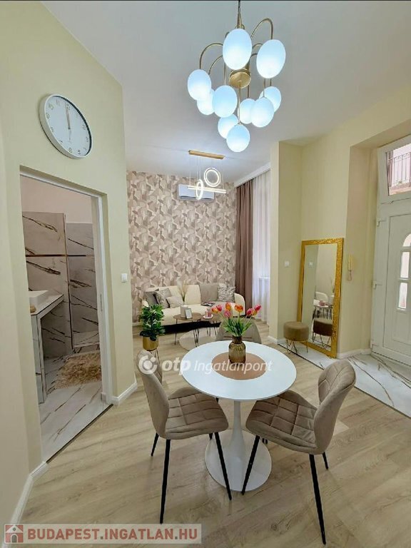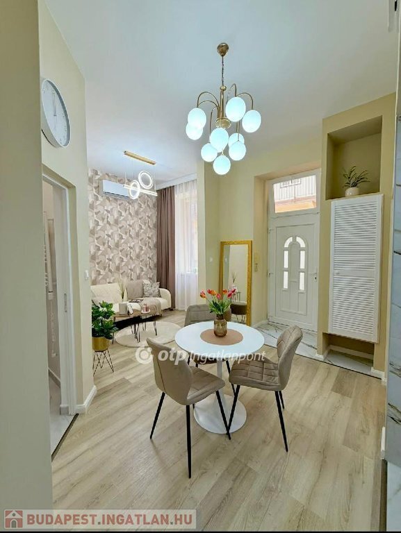 Az esztétikáról minőségi és stílusos anyagok gondoskodnak, a TELJES BERENDEZÉS a vételár részét képezi ( hűtő-fűtő klíma, mosogatógép, páraelszívó, bútorok és kiegészítők ), igazi beleszeretős kis lakás!