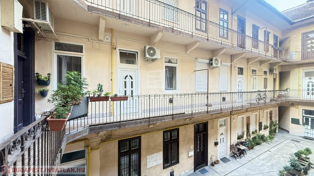 Az első emeleti, udvari fekvésű ingatlan csendes, mégis egy lépésre van a belváros nyüzsgésétől.