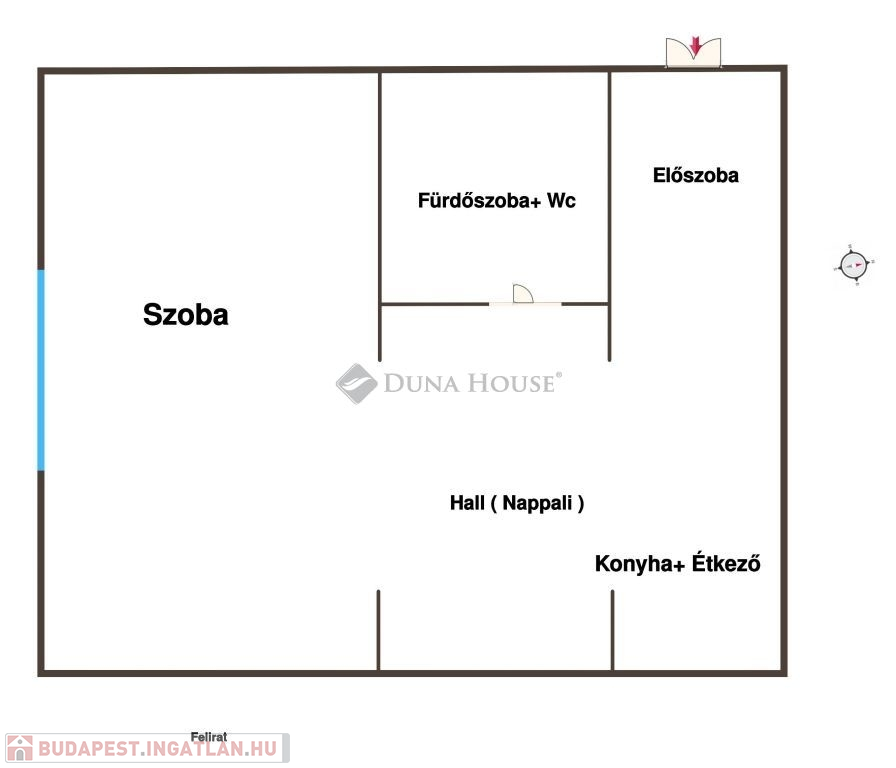 -1 szoba, hall, étkező