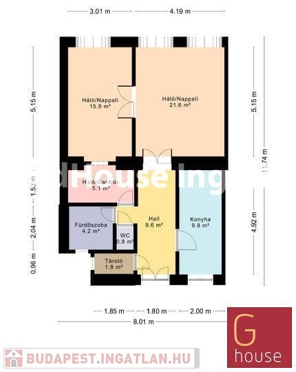Esztétika: A helyiségek friss festést kaptak, az eredeti fa parketta pedig jó állapotban megőrzésre került.