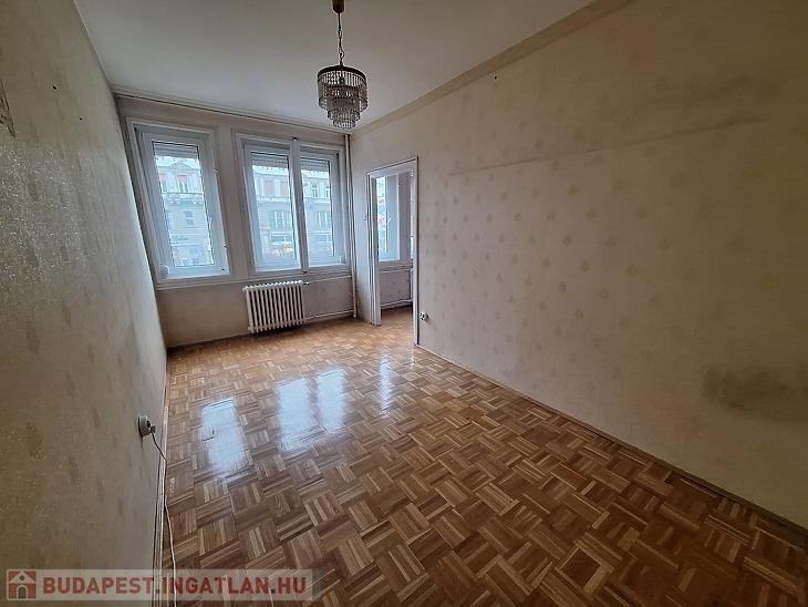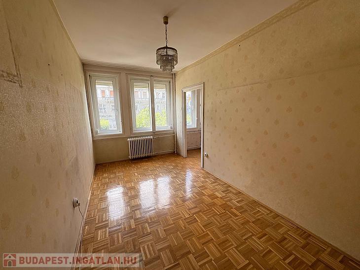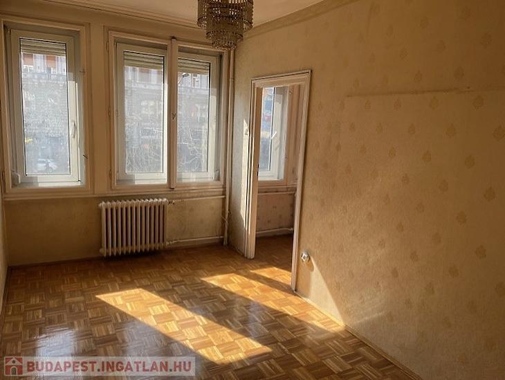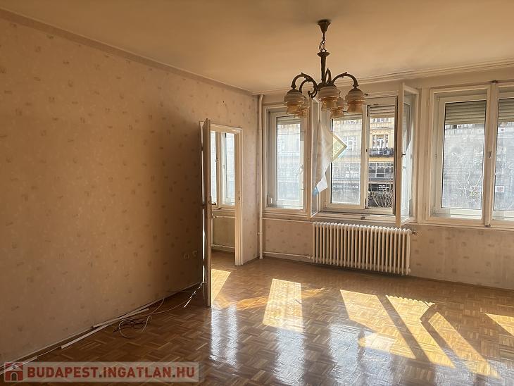 Eladó egy 58 négyzetméteres, háromszobás lakás Budapest 7. kerületében, a Károly körúton, liftes társasház első emeletén.