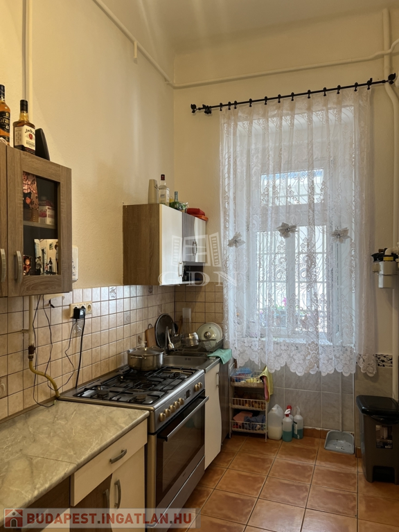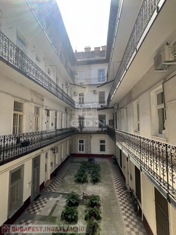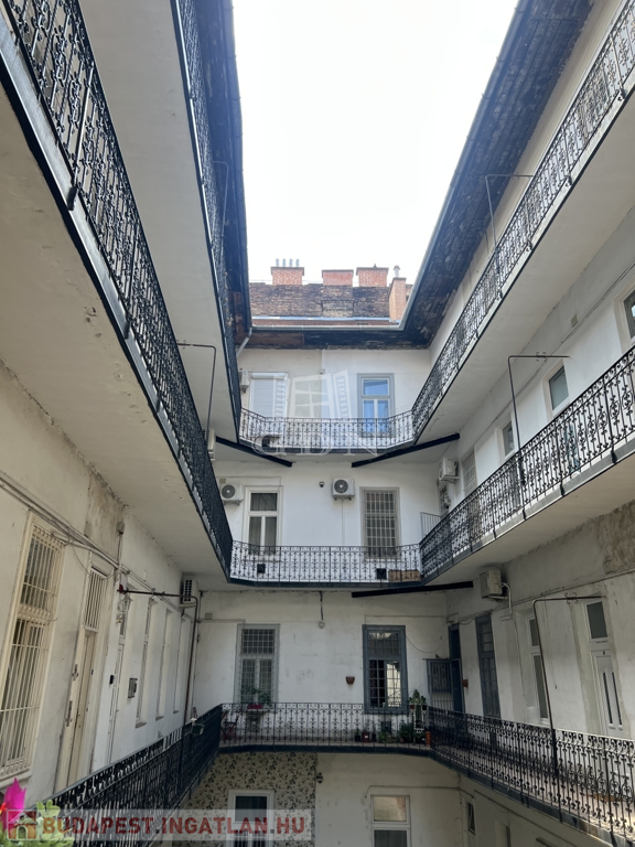 Csendes utcában, mégis kiváló közlekedés mellett, a VII. kerületben eladó egy 1. emeleti, 74 m²-es, 3 szobás lakás, ritkaságszámba menő erkélykapcsolattal!