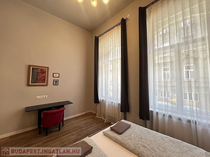 A Király utcában, egy rendezett társasház első emeletén kínálunk megvételre egy 70 m²-es, felújított, tágas lakást. Az ingatlan elosztása rendkívül praktikus, hiszen két különnyíló szoba, egy tágas nappali és egy külön konyha is rendelkezésre áll. A hálószobákhoz két fürdőszoba kapcsolódik, emellett egy különálló WC is megtalálható a lakásban. A fűtésről gázcirkó gondoskodik, az ingatlan állapota igényesen felújított, így azonnal költözhető.