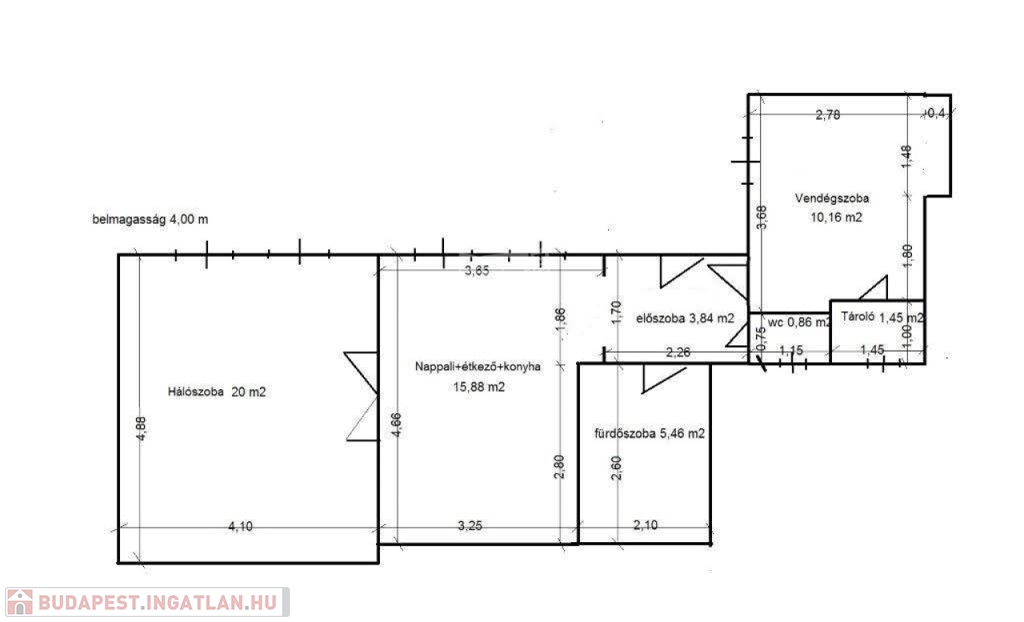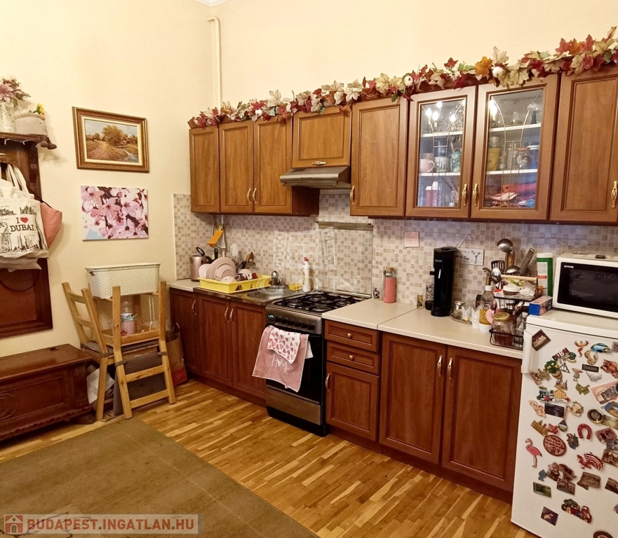 A helyiségek elosztása 2+1 szoba, ami ideális lehet akár családoknak, akár dolgozó fiataloknak. A körfolyosó utolsó lakása, melyet 2016-ban újítottak fel teljes körűen.