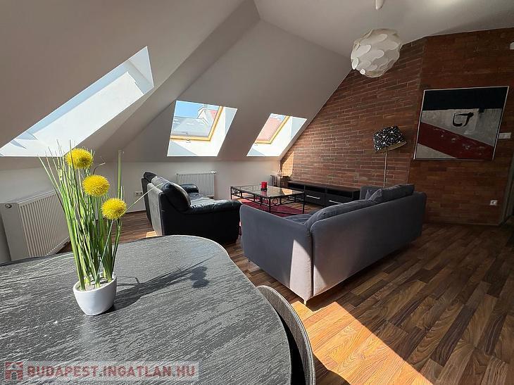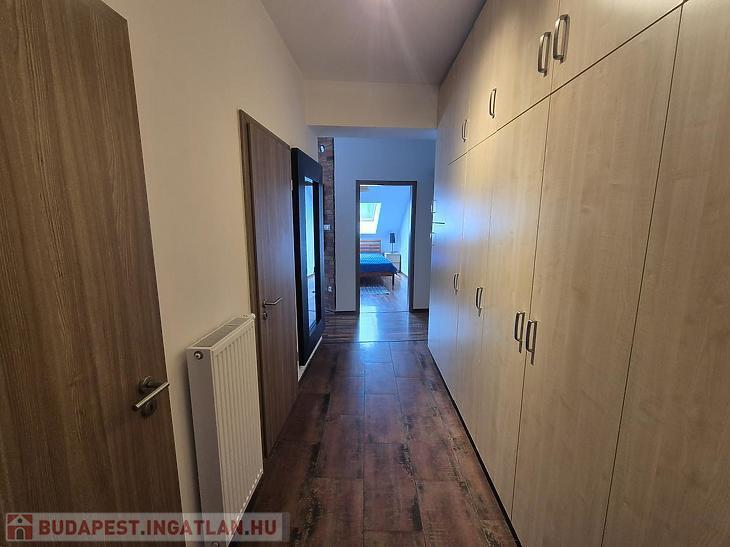 Az ingatlan 48 m2-es hasznos alapterülettel rendelkezik, míg a valóságos mérete összesen 64 m2. Az újépítésű lakás szintráépítéssel jött létre egy liftes társasház IV. emeletén.