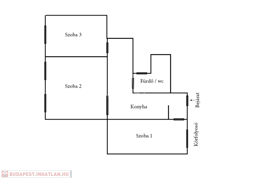 Praktikus elrendezésű, 3 külön nyíló szobával rendelkezik: