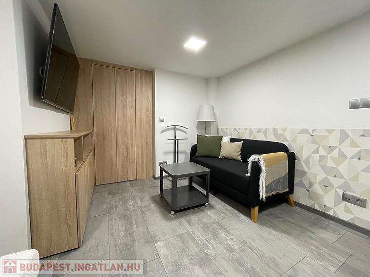 Az egyik lakás egy kisebb alapterületű, kompakt, de minden igényt kielégítő otthon: az alsó szint 18 nm, a galériával együtt 35 nm. Ideális lehet rövid távú kiadásra, fiatal pároknak vagy akár irodai használatra is. Teljeskörű felújításon esett át, modern burkolatokkal, beépített bútorokkal és gépesített konyhával, így azonnal költözhető vagy hasznosítható.