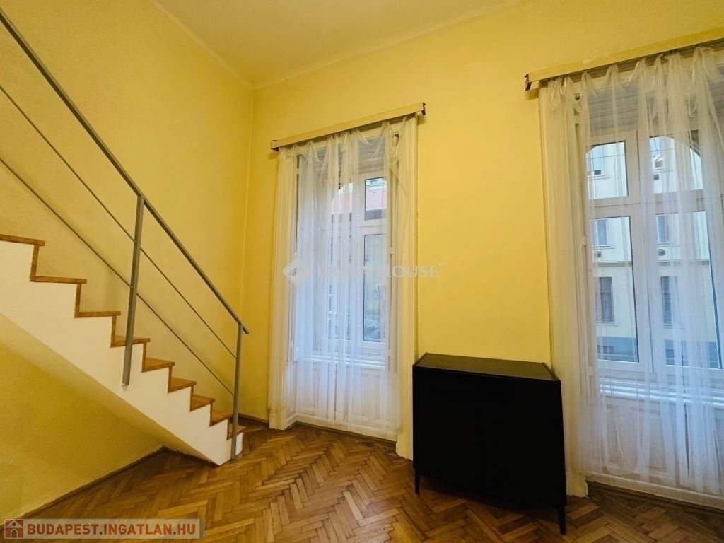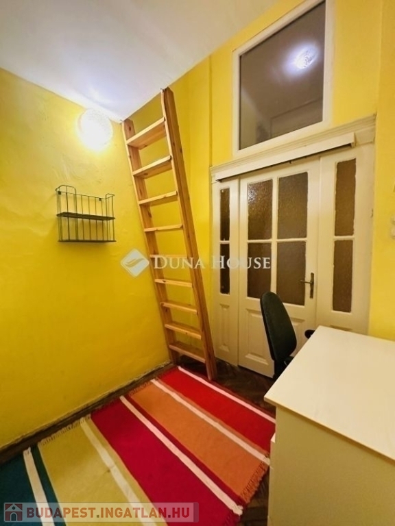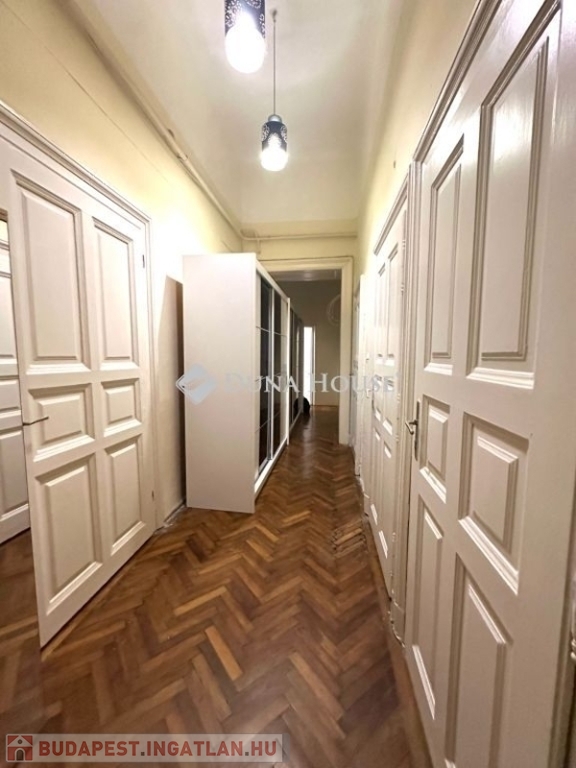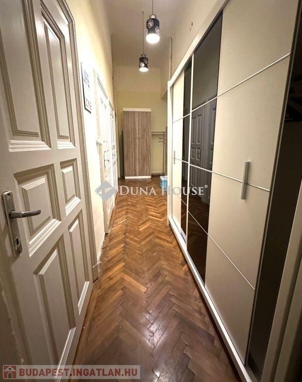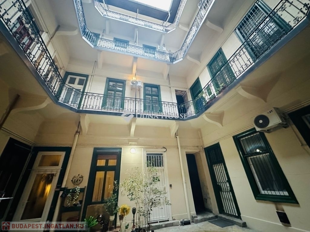 M4 metró közeli, lehetőségekben gazdag lakást kínálok megvételre a 8. kerület, II. János Pál pápa tér közeli, barátságos társasházban. A ház belső udvara mesébe illő belvárosi bérház hangulatot tükröz. A lakóközösség elérte, hogy a belső homlokzat átessen a felújításon, így igazán bájos környezetből nyílik ez a magasföldszinti ingatlan.Az ingatlan 76 m²-es , magasföldszinti, és akár két bejárat is kialakítható (jelenleg egy van, de a konyhánál adott még egy ajtó nyitása.Irodának, rendelőnek is tökéletes választás a lokáció és a társasházban való elhelyezkedése miatt.A lakás alatt egy szuterén helyiség van, melyet raktározásra használnak. Az ingatlan száraz!A lakás bútorozott és gépesített, költözhető állapotú ingatlan.Ablakai nagy része utcára néznek, műanyag nyílás zárók.3 külön nyíló szobás (2 egész és 1 fél) és egy külön nyíló étkezős konyha is rendelkezésünkre áll. Az két szoba is galériázott, melyek álló galériák.Jelenleg egy fürdőszoba van külön toalettel, de dupla komfort is megoldható, mert a wc mellett találunk egy tágas kamra helyiséget, mely beáldozható a 2. fürdőszoba kialakításához.Van egy hatalmas előszobánk, mely gardrób is jelenleg, de akár a konyhának is helyet tud biztosítani, amennyiben a konyhából szeretne kialakítani még egy hálószobát.A lakás belmagassága több, mint 4 méter, így aki duplex lakásban gondolkozik, itt valóra válthatja! Ez esetben a rengeteg szoba kialakítható az ingatlanban, akár 8 szoba is!Amennyiben maradunk az egy szintes verzióban, akkor a 4 külön nyíló szobát javasolnám kialakítani.Mindezt csak azért vázolom fel, mert az Egyetemek is közel vannak, pár villamos-, vagy metró megállónyira.Amennyiben saját célra vásárol, akkor egy 4-5 fős kisgyermekes család is kényelmesen el tud férni.A nyílászárók ki lettek cserélve kivéve egy-két kis ablakot, ami lichthofra néz. A bejárati ajtó is új típusú, hang és hőszigetelt.A lakás vizes blokkjai rendben vannak, pár éve lettek felújítva.A villanyhálózat felújított. 25 Amperes.Burkolatok, falak rendezettek. Ami az eredetihez nagyon hasonló állapotot tükröz, az a parketta. Ezt már az új tulajdonosra bízzuk, mit kezd vele.A konyha jól bútorozott, gépesített.A belső nyílászárók eredetiek, nagypolgári hangulatban úsztatják ezt a tágas, jó elosztású otthont.A fűtés jelenleg konvektorral megoldott és a meleg vizet átfolyós vízmelegítő biztosítja.Amennyiben nem gáz párti, akkor ezek kiválthatóak hűtő-fűtő klímával és egy jó ECO villanybojlerrel. A villanyhálózat 25 Amperes.A tömegközlekedés nagyon jó, a M4 2 percre található. A Rákóczi út 3 perc séta, a József és Erzsébet körút 10 perc séta és a Keleti Pályaudvar is.Az utca nem nagy forgalmú, csendesebb része a lokációnak és még parkolóhely is akad a ház előtt. Éjszaka csak a ott lakók parkolhatnak az utcában.Jó választás egyet befektetőknek, akik hasznot akarnak maximalizálni két lakással vagy egy 8 szobás duplex lakással.Jó választás nagyobb családnak, ahol szükség van 3-4 külön nyíló szobára.Jó választás egyetemistáknak az egyetemekhez közeli lakhatásra.