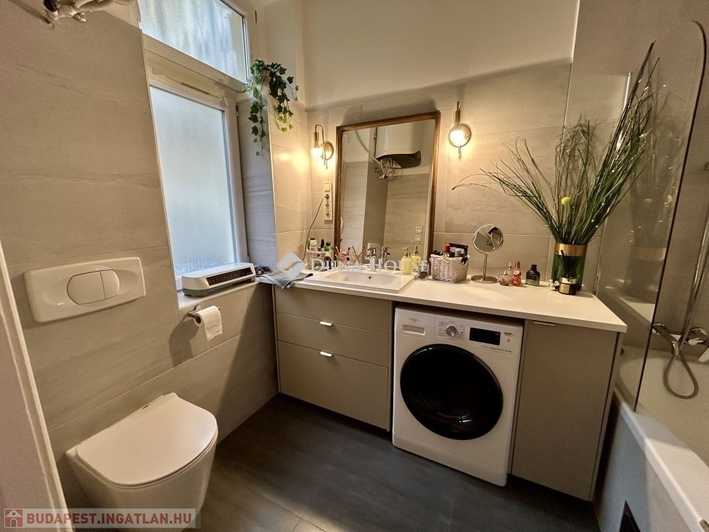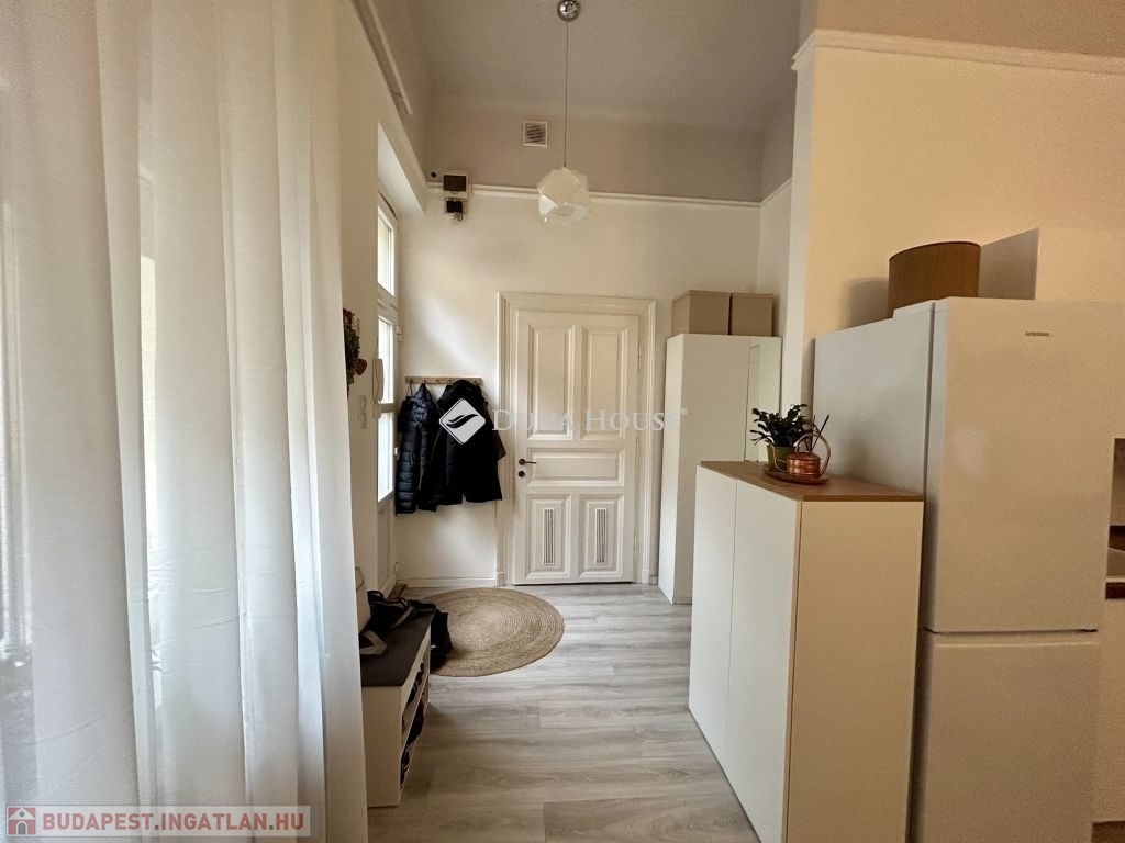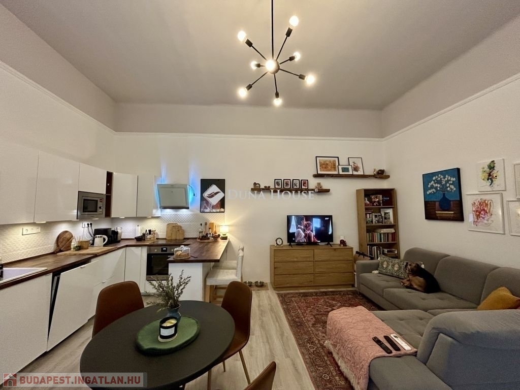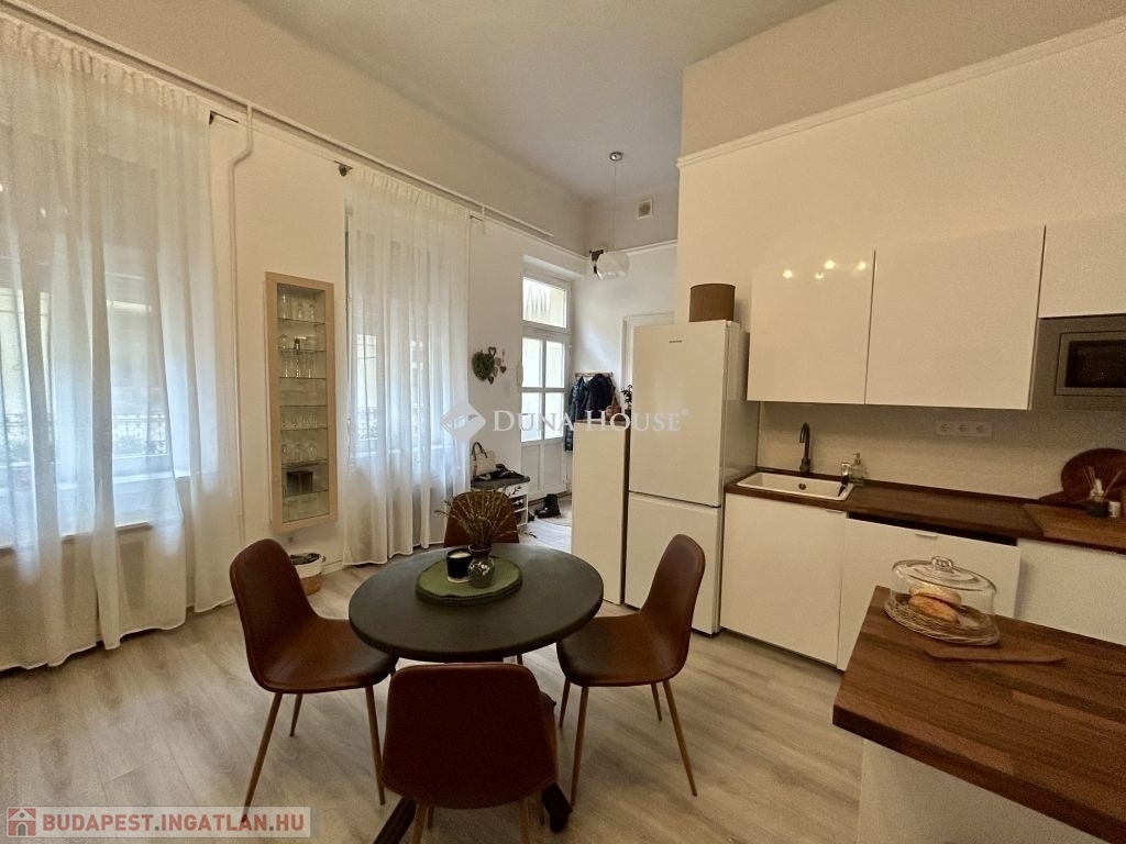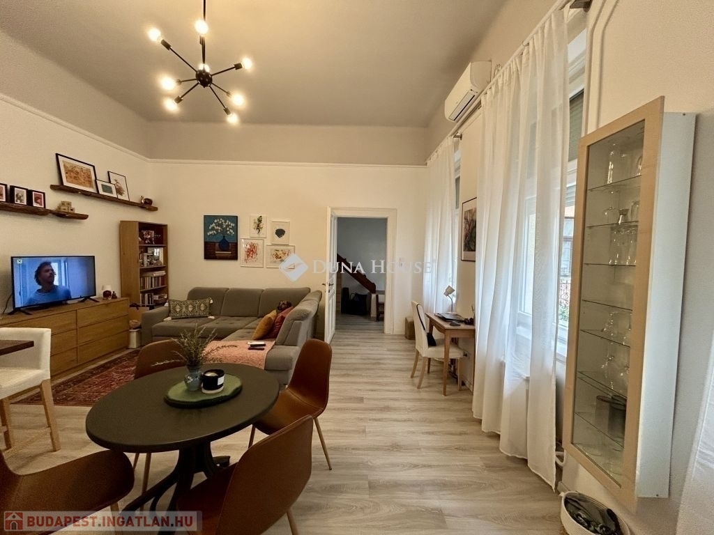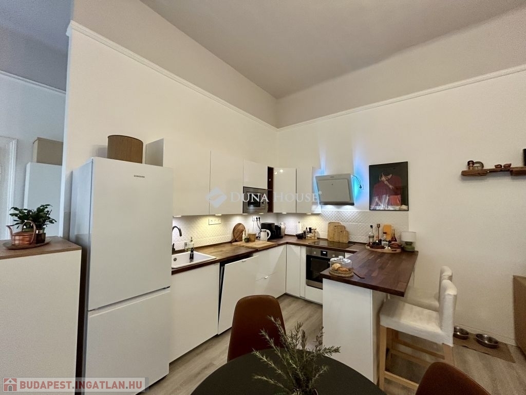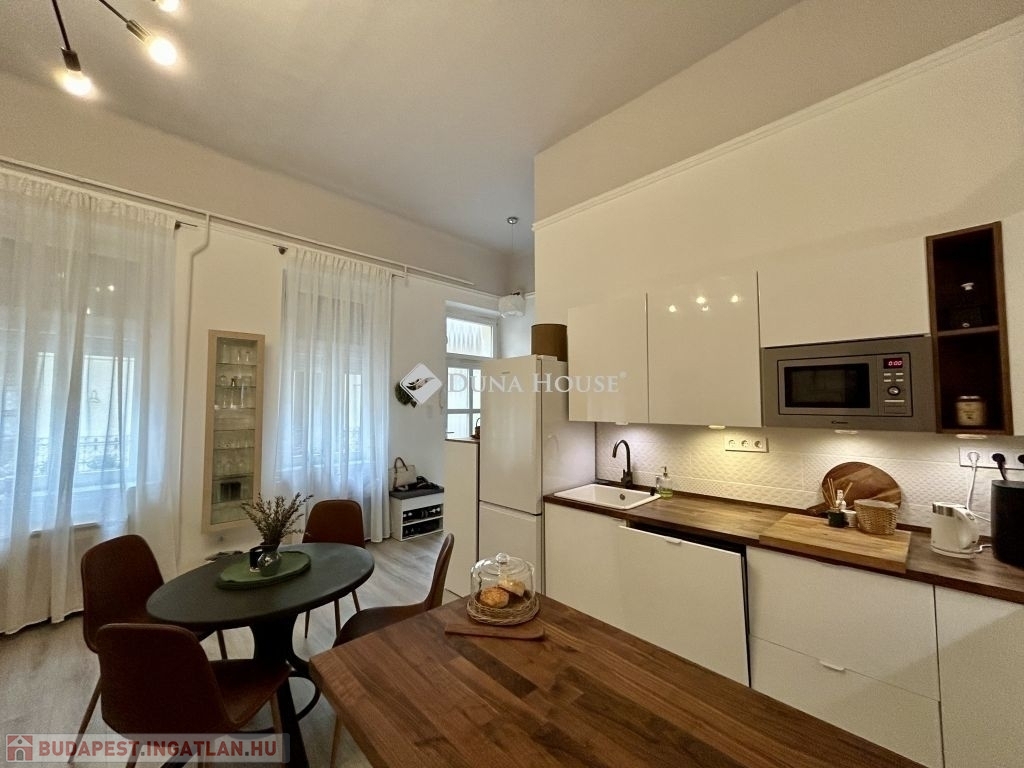 58 m²-es lakás a Palotanegyedben 2. emelet, amerikai konyhás nappali + 2 félszoba!Eladásra kínálok egy 58 m²-es, plusz 3,4 m² és 4,5 m² galériákkal kialakított, különleges hangulatú, tavaly teljeskörűen felújított lakást a Palotanegyedben, egy 3 emeletes, rendezett társasház 2. emeletén (lift nélkül). A lakás dél-keleti tájolású, csendes belső udvarra néz, és a körfolyosón nincs átjárás a lakás előtt, így teljes nyugalmat biztosít.A felújítás során minden víz- és elektromos vezeték cserélve lett, új, modern konyhabútor került beépítésre, az enteriőrt lakberendező alakította ki. A terek kiválóan kihasználtak, a két galéria maximális helykínálatot biztosít.Felszereltség:- 3 db hűtő-fűtő klíma a helyiségekben- amerikai konyhás nappaliban gázkonvektor- hőszivattyús villanybojler- fürdőben elektromos fregoli- gardrób, spotlámpás világításA bútorok külön megállapodás szerint elérhetők.Kiemelkedő elhelyezkedés - a lakás a Kálvin tér és a Corvin-negyed között található, pár perc sétára mindkettőtől. A környék infrastrukturálisan kiemelkedő: metró, villamos, buszok, kávézók, éttermek, egyetemek és kulturális helyszínek könnyen elérhetők.Jöjjön el, és nézze meg ezt az egyedi hangulatú, igényesen felújított otthont!