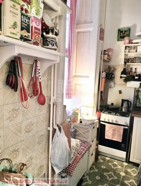 A duplakomfortos, nagypolgári lakás nagy méretű nyílászáróinak köszönhetően világos és napfényes. A fűtésről gázkazán gondoskodik.
