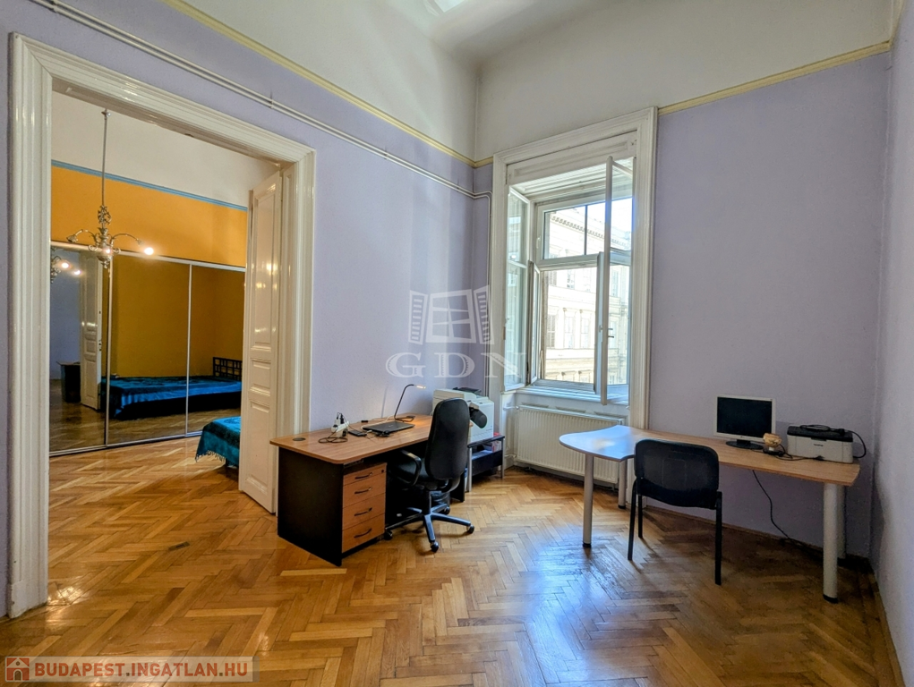 Kivételes adottságú, 91 m²-es lakás eladó Budapest egyik legpatinásabb részén, pár lépésre a Kálvin tértől, a Duna, a Vásárcsarnok és a belvárosi sétálóutcák közvetlen közelében.