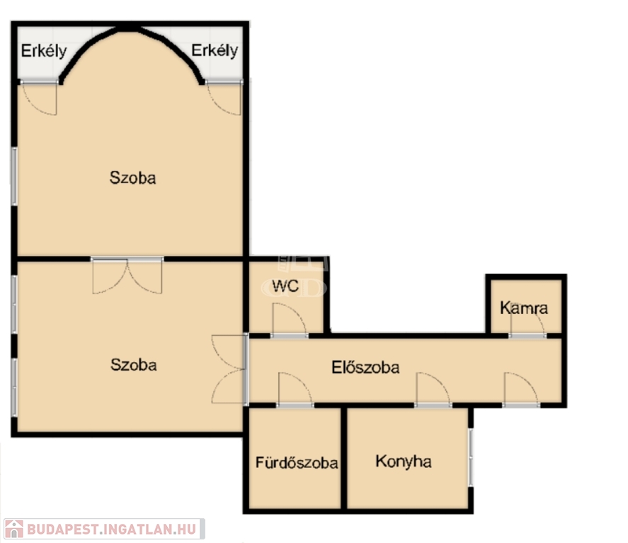 Az ingatlan jelenlegi kialakítása két szobából áll, azonban a kedvező alaprajznak köszönhetően akár három hálószobás elrendezés is könnyedén megvalósítható, így rugalmasan igazítható saját lakhatási vagy befektetési elképzelésekhez.